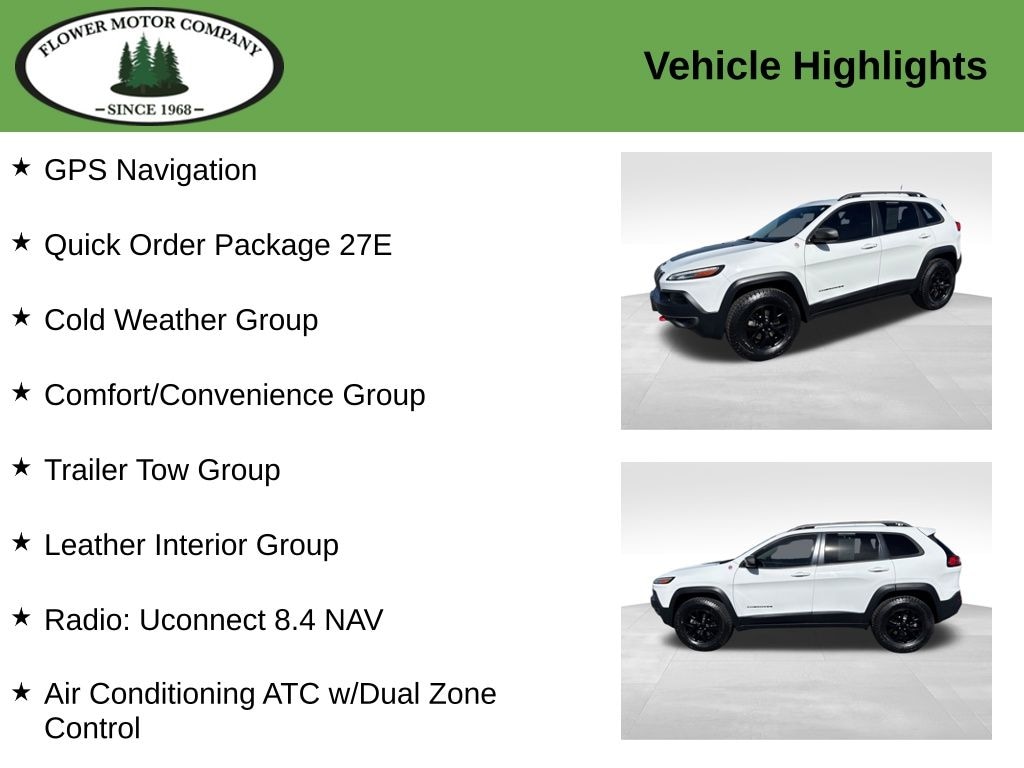 This 2016 Jeep Cherokee Trailhawk is a versatile and well-equipped SUV that's ready to take you wherever your adventures lead. Visit Flower Motor Company today to experience its capabilities firsthand.